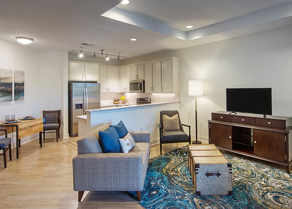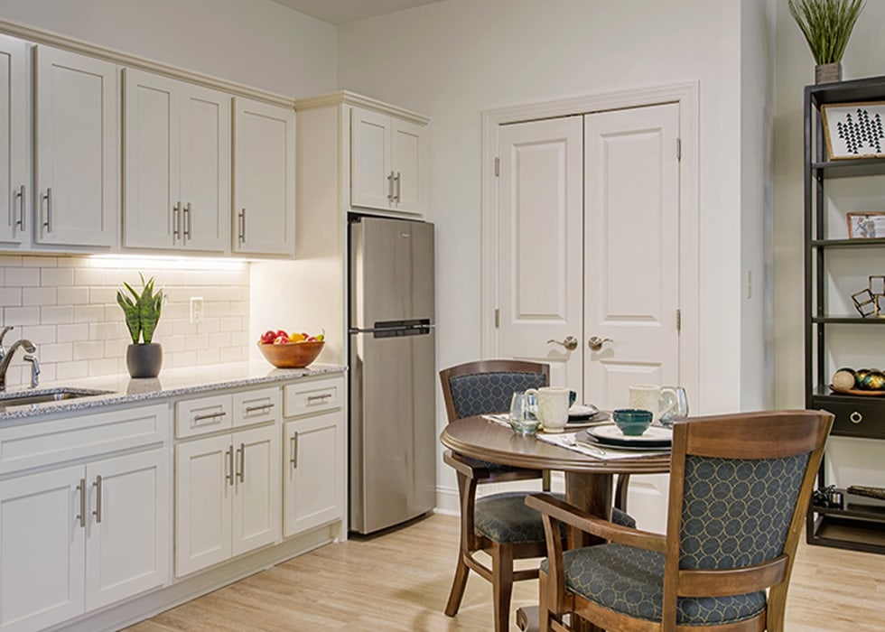 Our independent living apartments are big and bright, with full kitchens, granite countertops, under-cabinet lighting, and convection ovens. Assisted living residents enjoy airy and spacious 1-bedroom and studio apartments with kitchenettes. Our Lilac Trace Memory Care apartments are intuitively designed for comfort and security, providing residents with a familiar and reassuring environment.